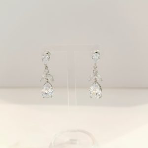 Aretes bride plateado gota y dos hojas